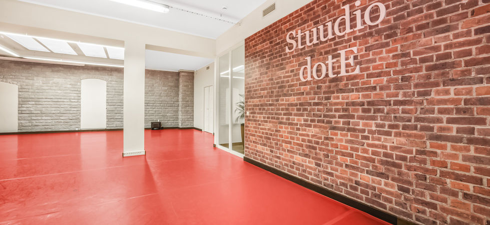 Ruumid: dotE multifunktsionaalsed saalid on sisustatud heli-, video-, valgustus- ja mängulahendustega. Saalides on olemas peeglid ning tantsupõrand. Lisaks kööginurk, garderoob, wc ja pesuruum. dotE kööginurgas on veekeetja, kohvimasin, mikrolaineahi, külmik ja nõudepesumasin.